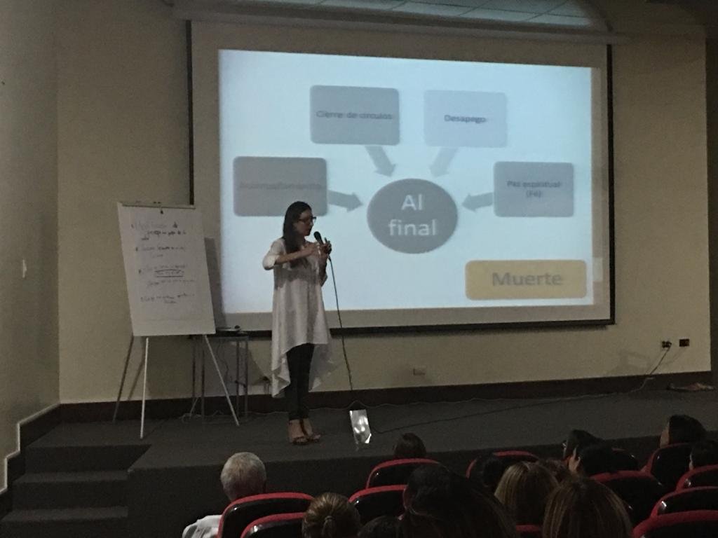 Realizo capacitaciones para mejorar o fortalecer habilidades de acompañamiento, estrategias de apoyo y seguimiento en duelo. Brindo mi experiencia a personal de salud, centros de atención y a grupos de autoapoyo.